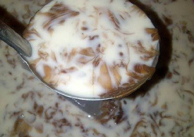 Aduk perlahan jangan sampai santan pecah. 1 sachet susu kental manis cokelat. 500 ml air matang.